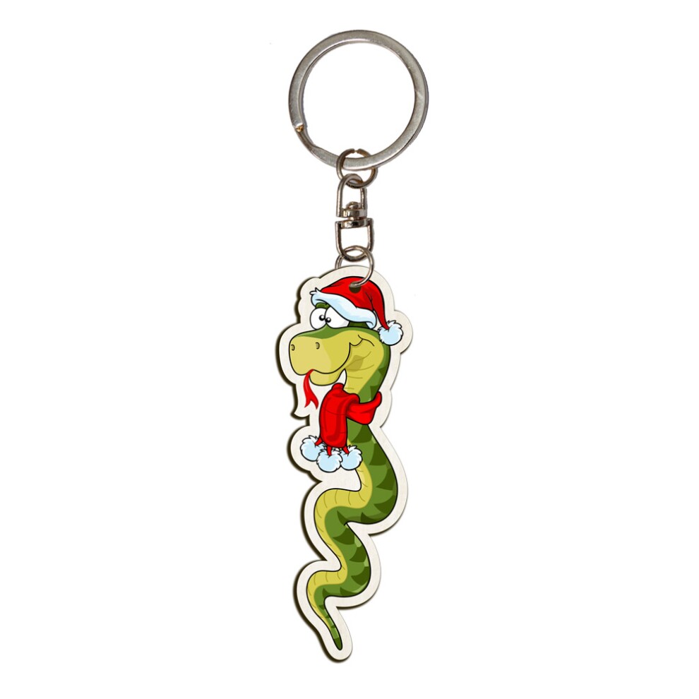 Деревянный брелок Змейка. Яркий и красивый сувенир к новогодним праздникам.