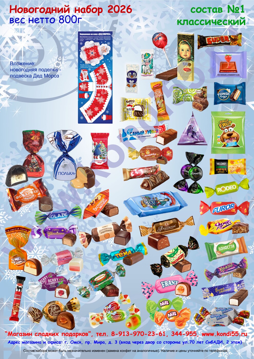 4 варианта состава (от классического варианта до максимально современного, представленного продукцией таких брендов, как Mars, Meller, Frutellа и тд)- выбирайте на свой вкус.