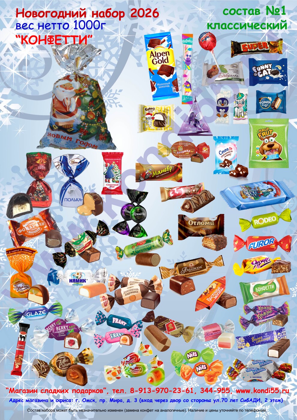 Цена набора зависит от веса: варианты состава ниже, возможность выбора понравившегося варианта для оформления заказа находится чуть выше (справа от фото).