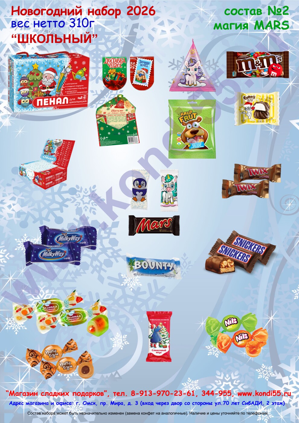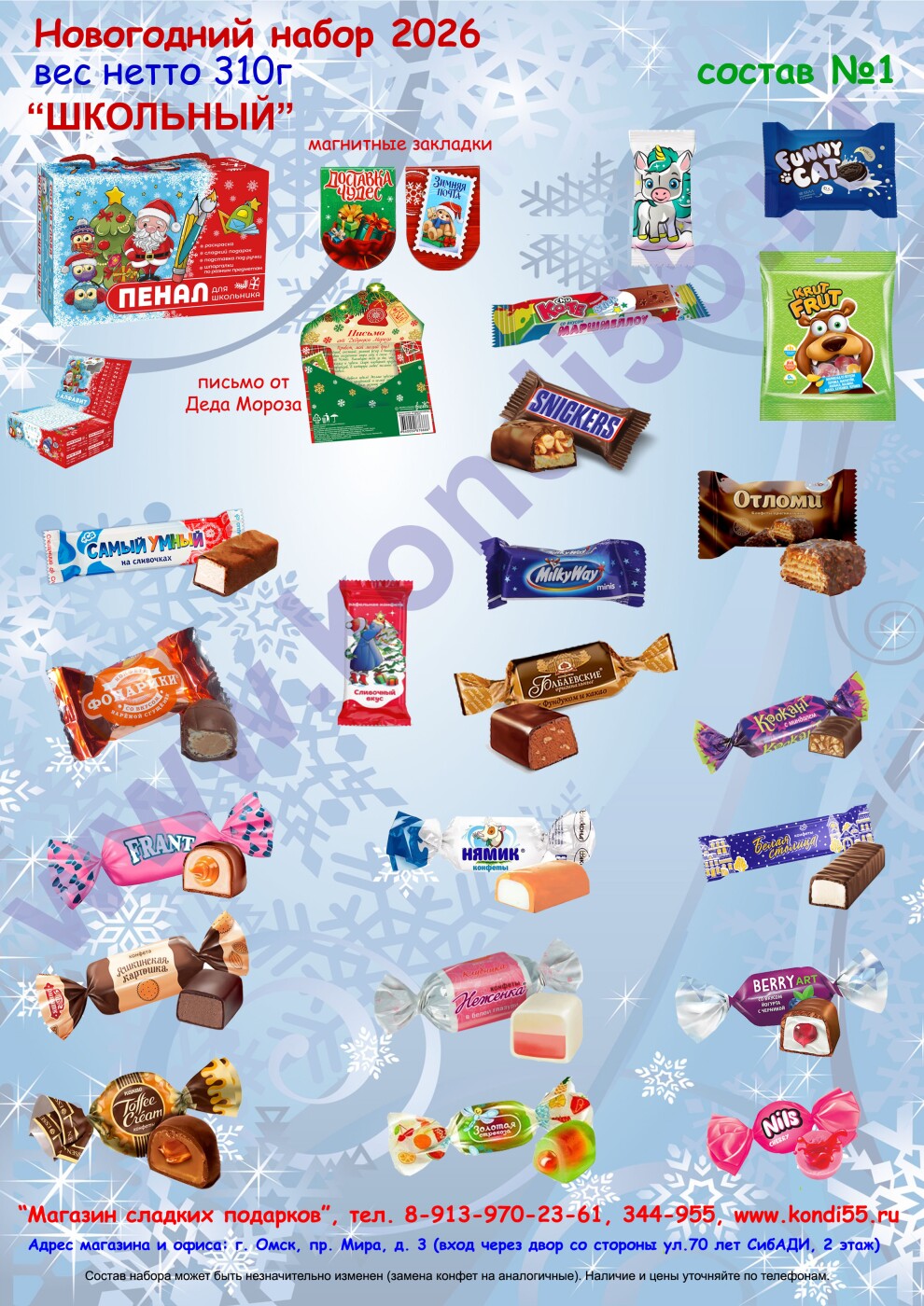 Вкусный шоколадный набор в новогодней картонной коробке ПЕНАЛ - отличный тематический набор для школьника.