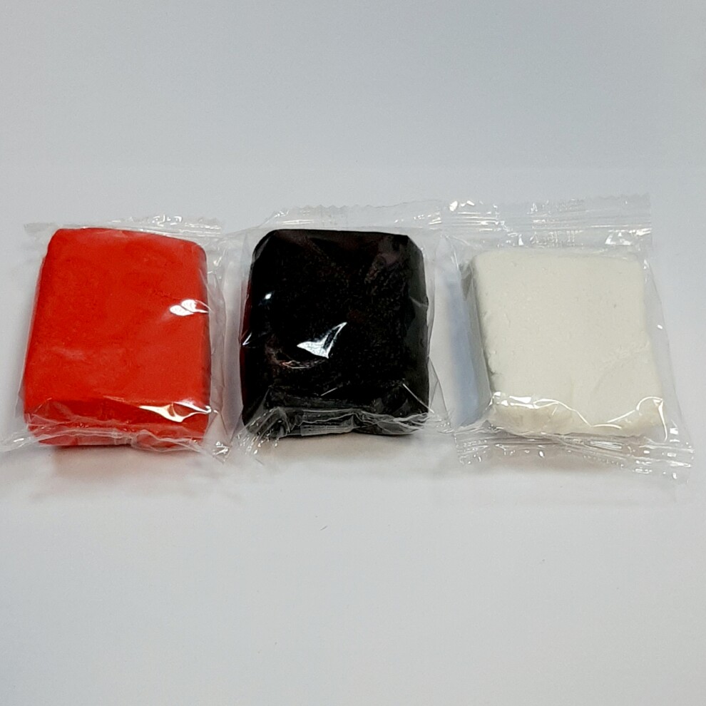 Цвета пластилина в наборах: белый/красный/зеленый, белый/красный/черный. Из каждого набора получаются замечательные новогодние поделки, подвески, брелочки, магнитики.