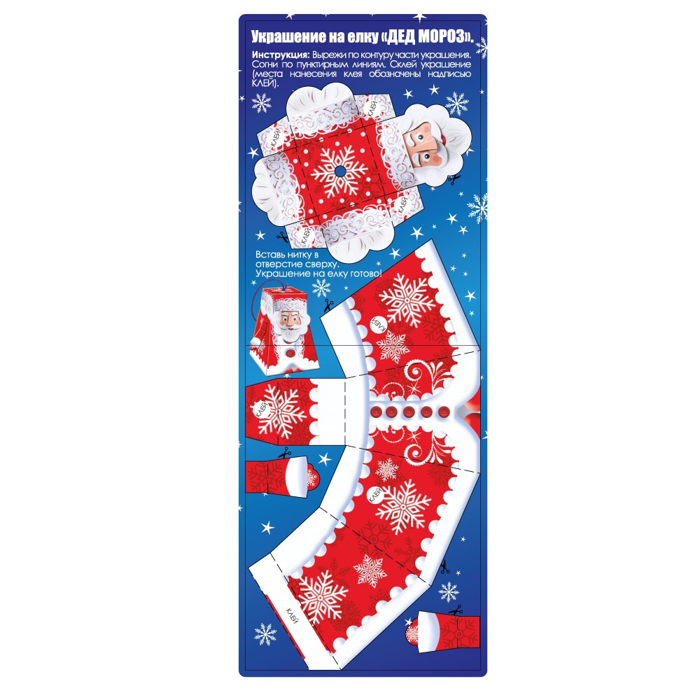 Новогодняя поделка ДЕД МОРОЗ - подвеска, украшение на елочку. Недорогой сувенир для вложения в новогодние подарки.